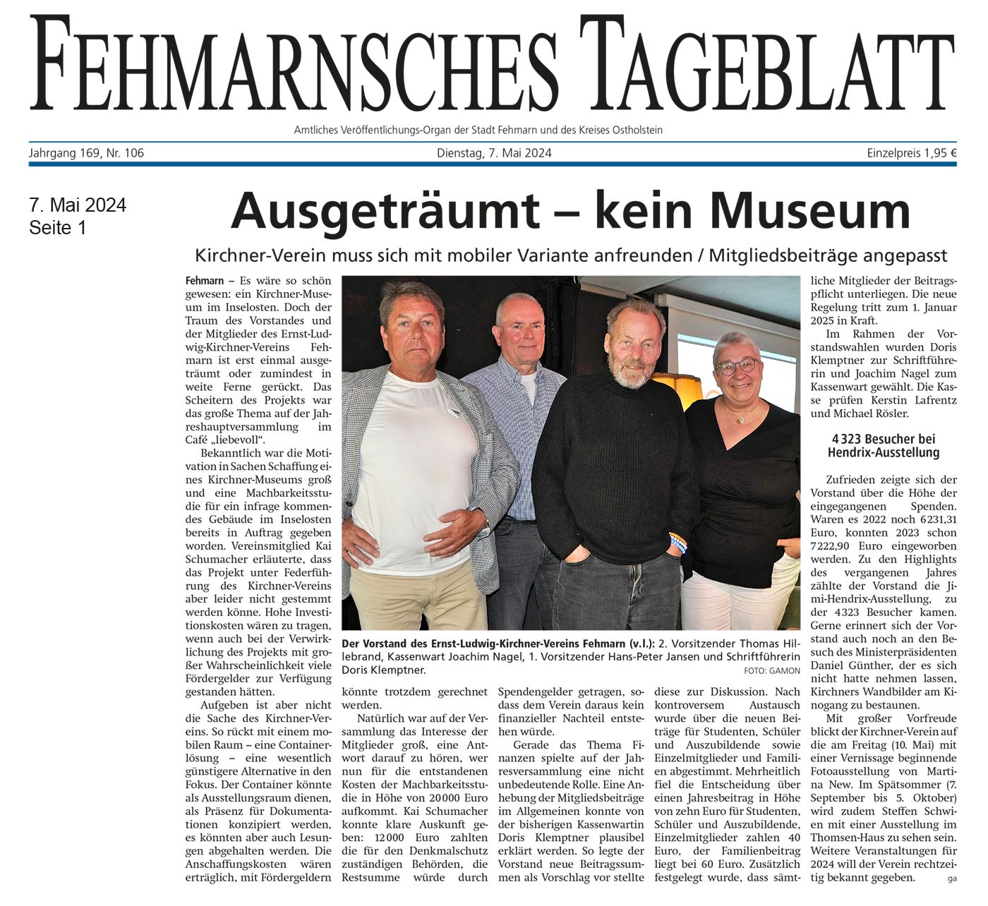 5 Fragen an den ersten Vorsitzenden des Ernst Ludwig Kirchner Vereins Fehmarn, Hans-Peter Jansen.